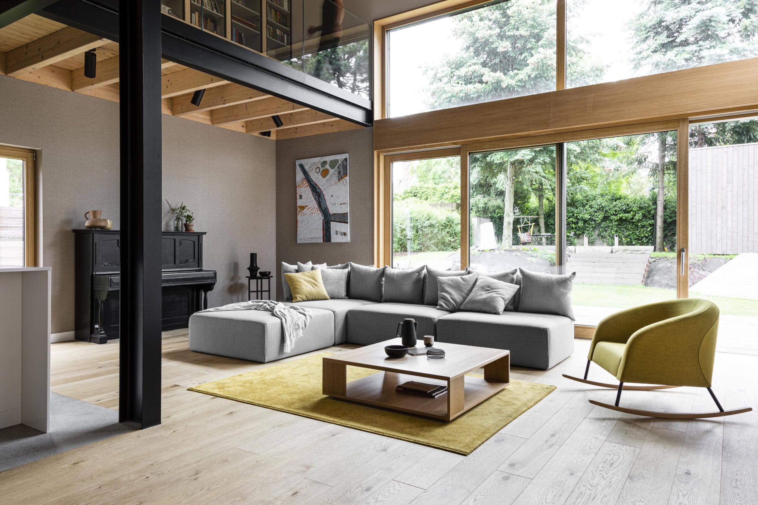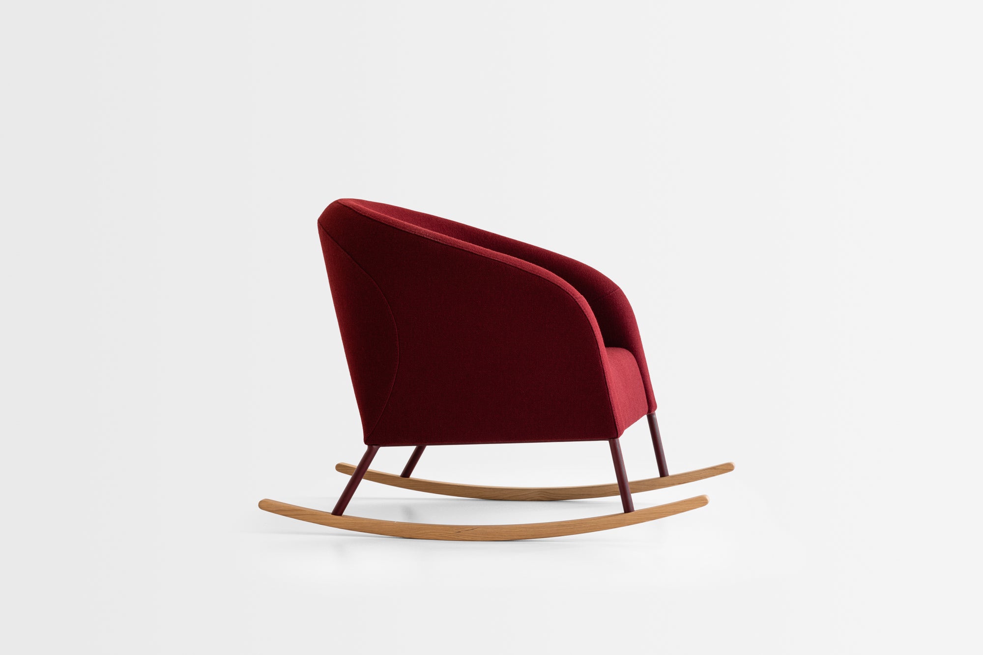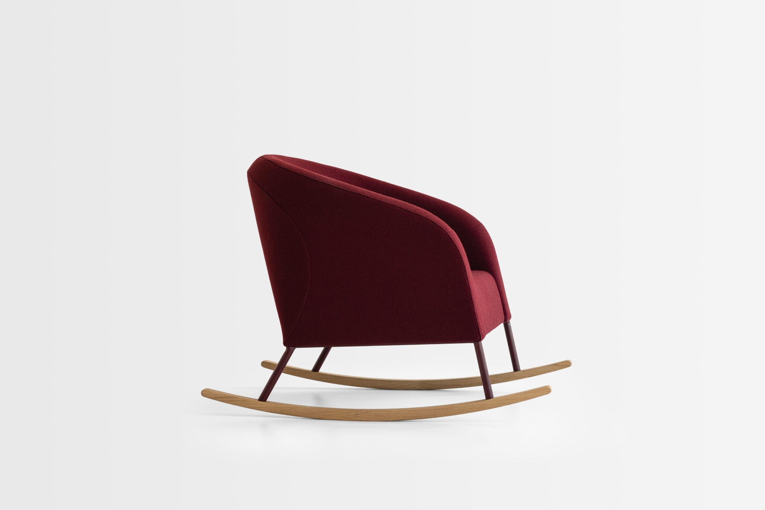 Kolekcja oferuje kilka wersji fotela – na metalowych nogach, na stalowych płozach, na nogach dębowych oraz w wersji na bujanych płozach z litego dębu. Dzięki temu możesz wybrać wariant, który lepiej pasuje do charakteru wnętrza: bardziej „kontraktowy” i minimalistyczny na stali albo cieplejszy, domowy na drewnie z efektem kołysania. Wspólne pozostaje jedno: wygodne, głębokie siedzisko z pianką poliuretanową i dopracowaną konstrukcją.