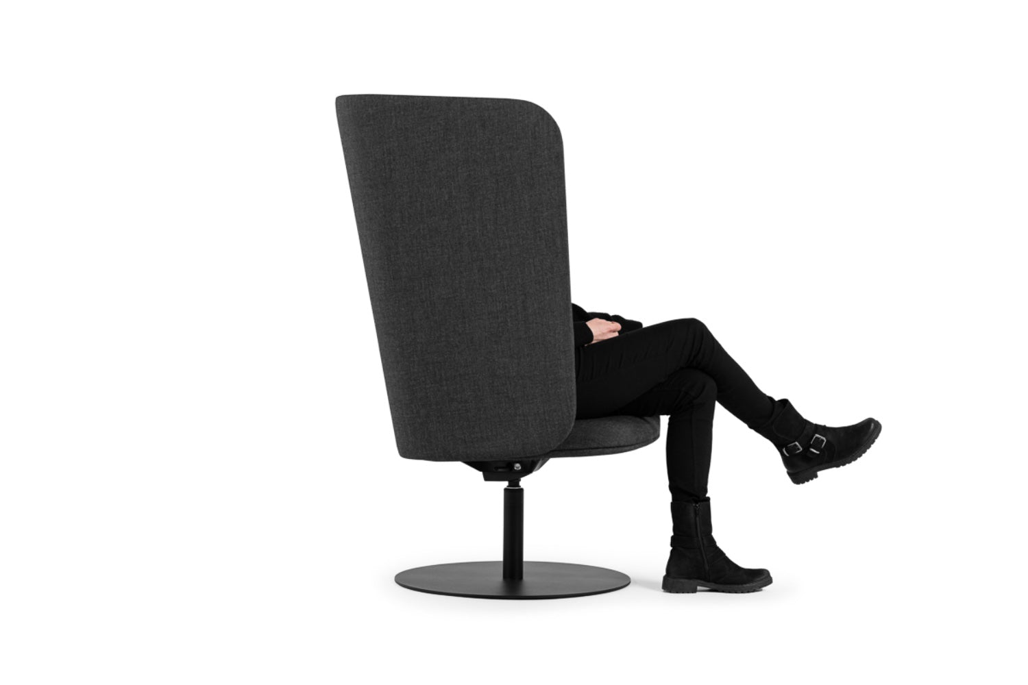 Shieldon to obrotowy fotel Noti z wysokim oparciem przedłużonym do boku, które tworzy osłonę wizualną i akustyczną. Pozwala odizolować się od otwartej przestrzeni, jednocześnie zostawiając drugą stronę fotela otwartą – dla kontaktu z otoczeniem, rozmowy czy wspólnej pracy.