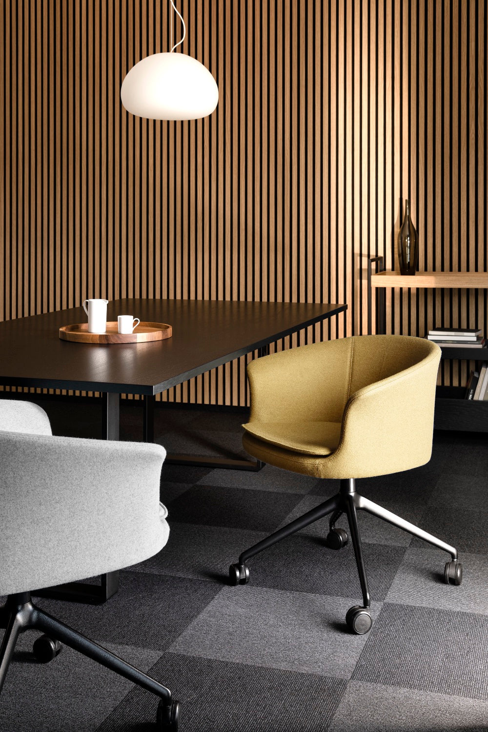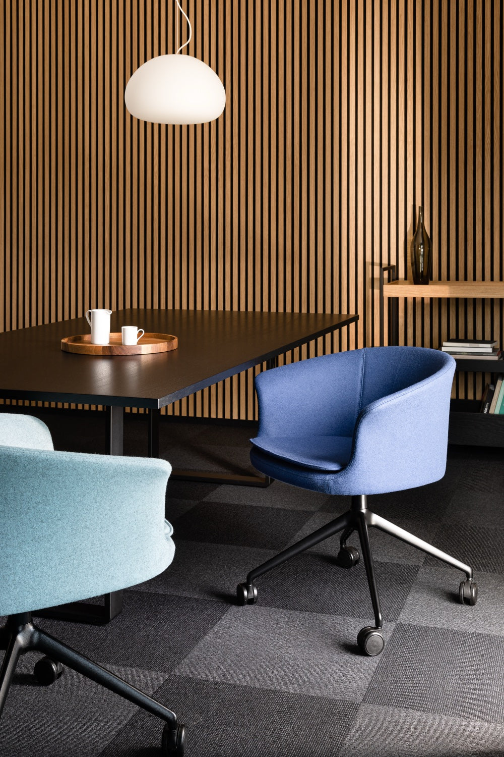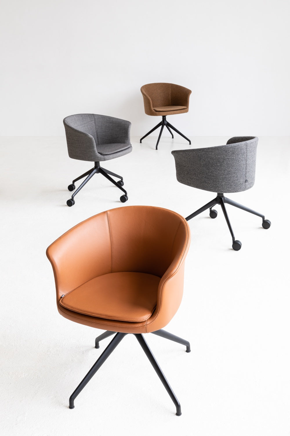 Lekka, przyjazna forma fotela świetnie odnajduje się w biurach, salach konferencyjnych i domowych gabinetach. Bogata oferta tkanin i skór pozwala dopasować wykończenie do charakteru wnętrza – od minimalistycznych przestrzeni pracy po bardziej przytulne home office.