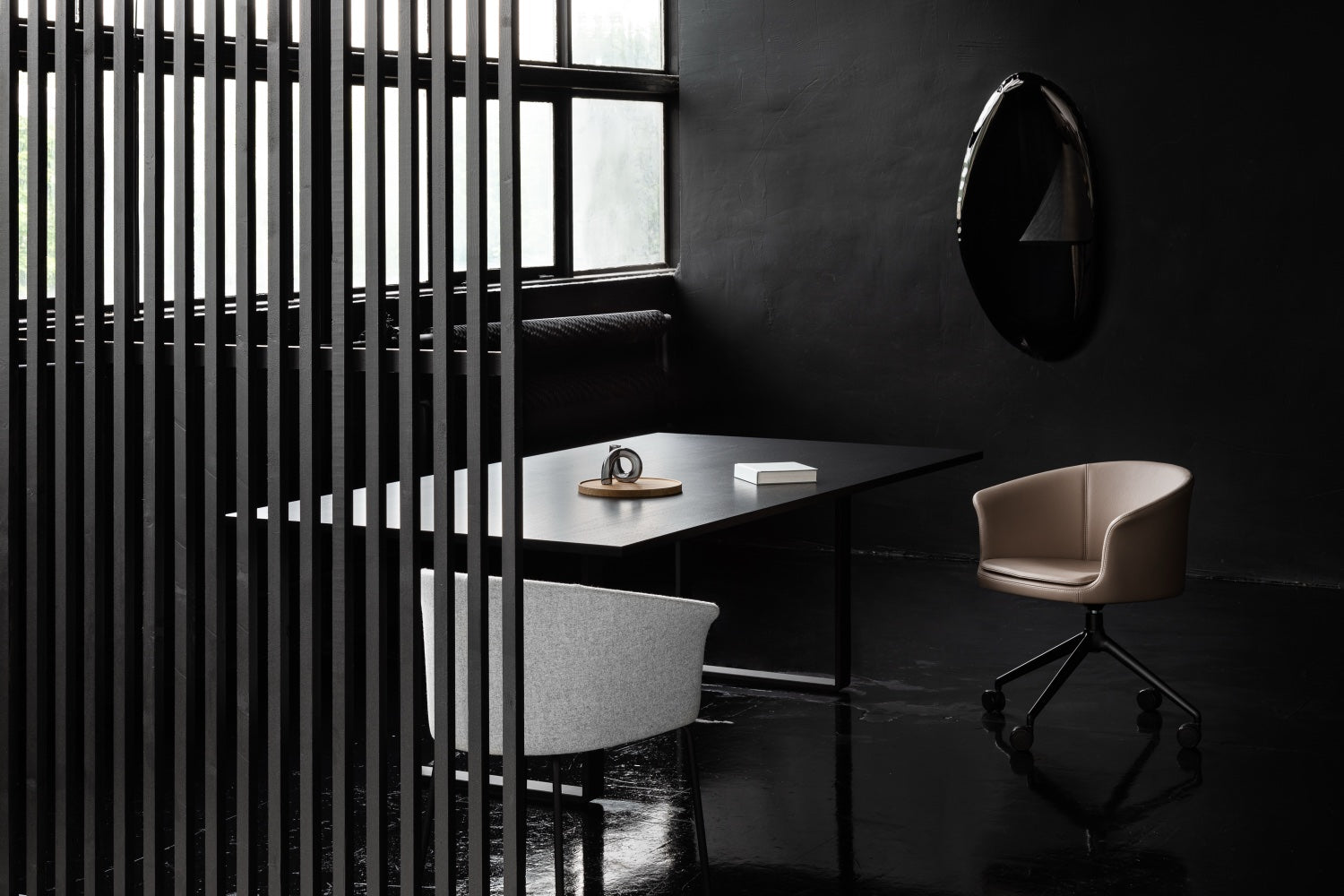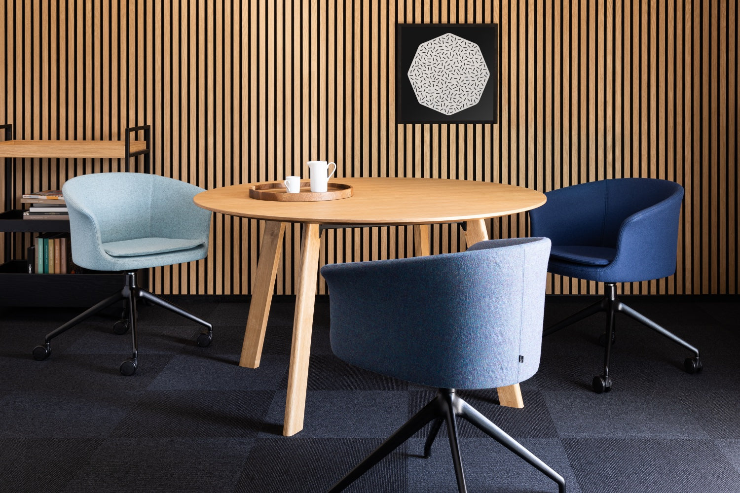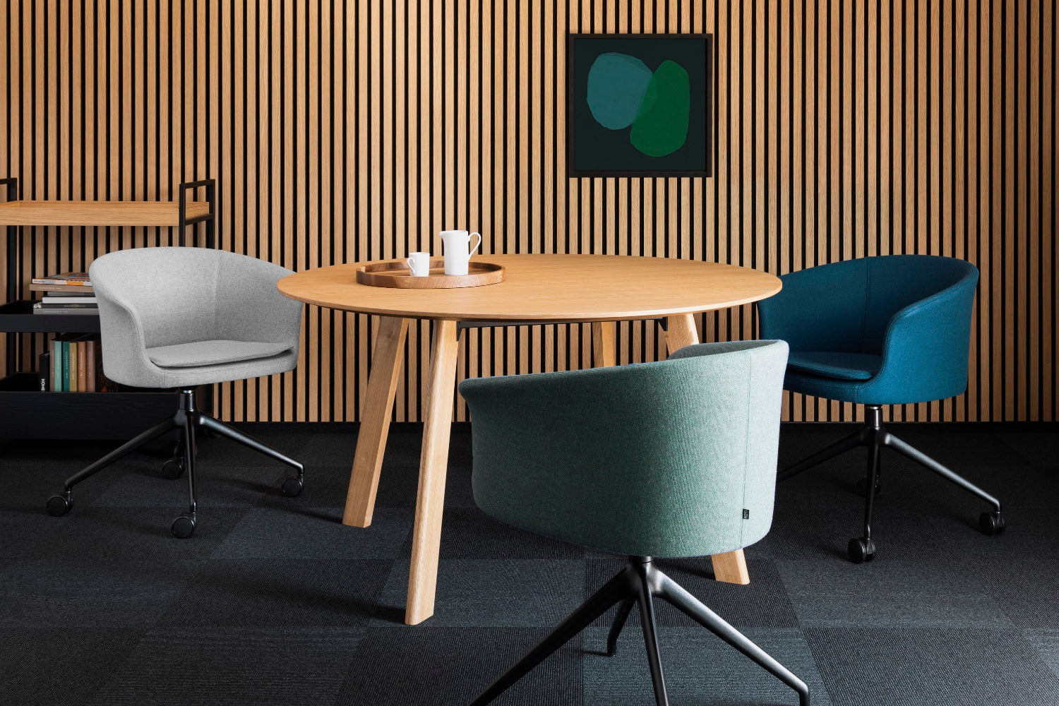 Lekka, przyjazna forma fotela świetnie odnajduje się w biurach, salach konferencyjnych i domowych gabinetach. Bogata oferta tkanin i skór pozwala dopasować wykończenie do charakteru wnętrza – od minimalistycznych przestrzeni pracy po bardziej przytulne home office.