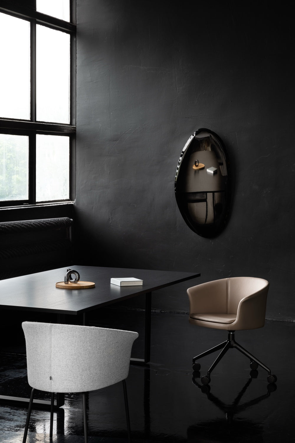 Organiczna, otulająca forma kubełka nawiązuje do rodziny foteli Tulli, ale w wersji Light bryła jest bardziej kompaktowa i wizualnie smuklejsza. Przyjazny, „domowy” charakter sprawia, że fotel dobrze wygląda zarówno w reprezentacyjnych gabinetach, jak i przy biurku w home office. Komfort zapewnia kubełkowe siedzisko z pianki na stalowym stelażu, które stabilnie podpiera plecy podczas dłuższej pracy.