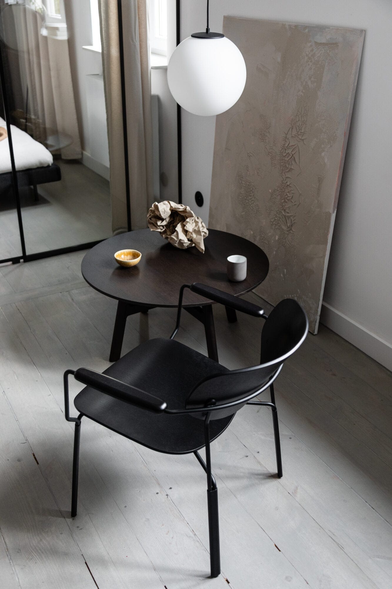 Krzesło Algo marki Noti to propozycja o organicznej linii i lekkiej, ażurowej konstrukcji, zaprojektowana przez Nikodema Szpunara w latach 2021/2022. Delikatnie zaoblone krawędzie siedziska i oparcia miękko otulają sylwetkę, a smukłe metalowe nogi dodają wizualnej lekkości. Pomimo subtelnej formy, Algo zapewnia wysoki komfort siedzenia.