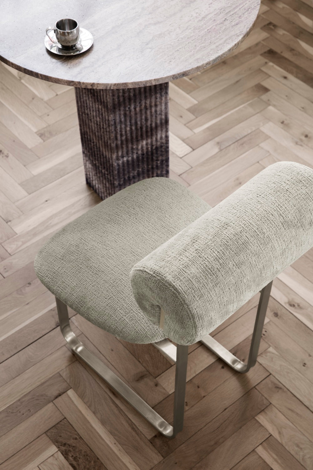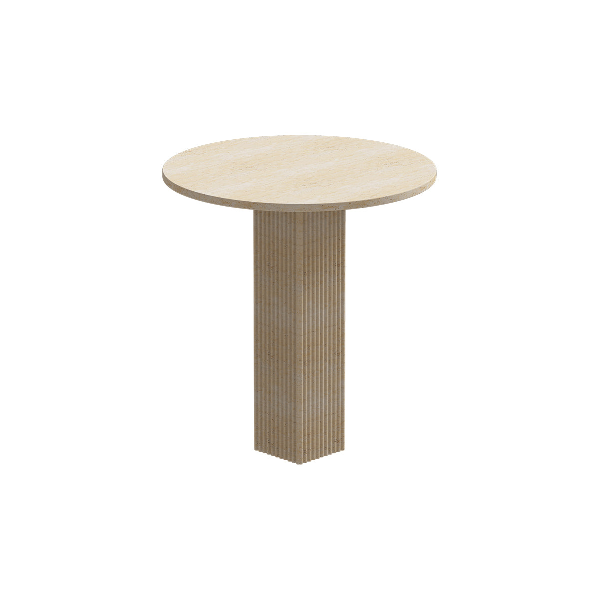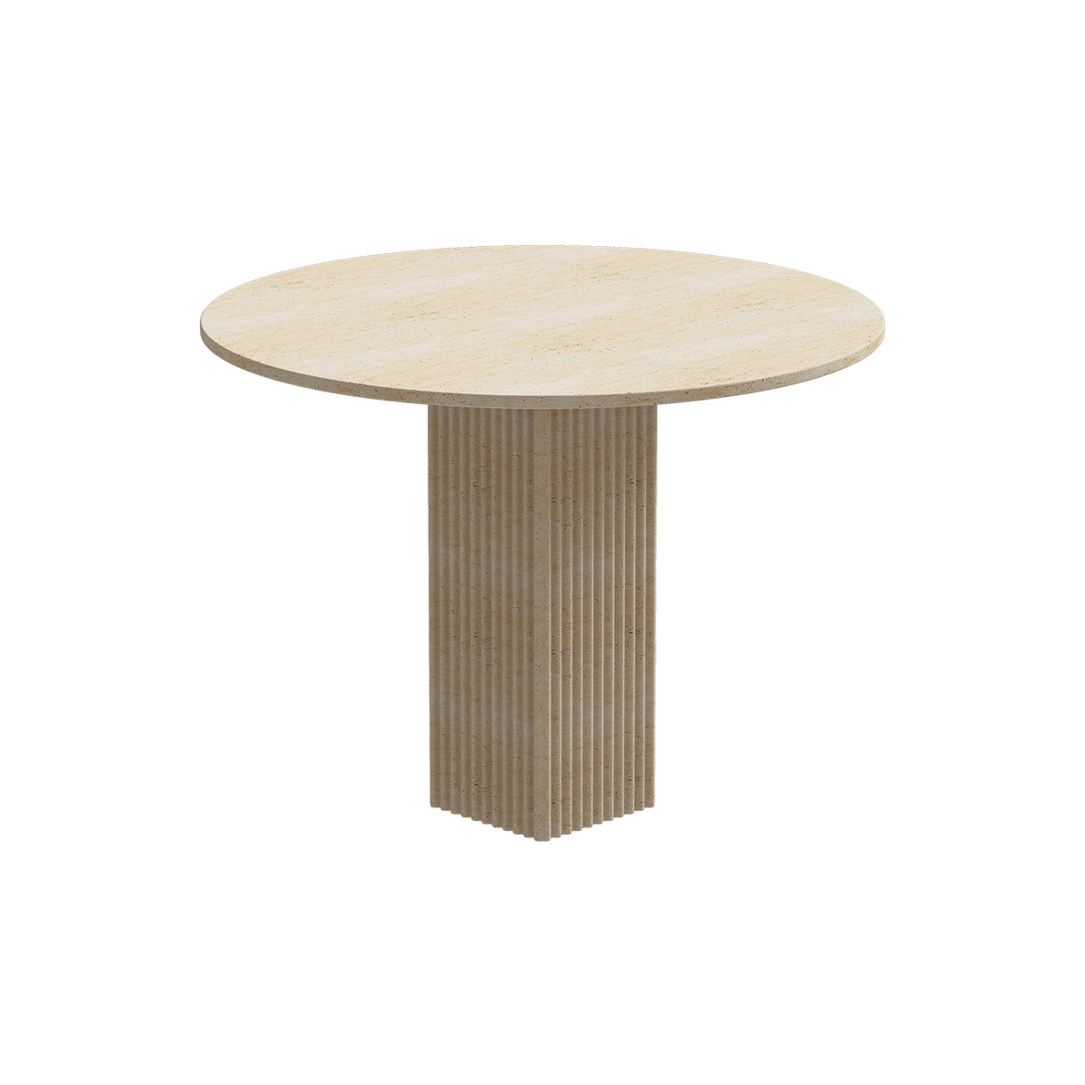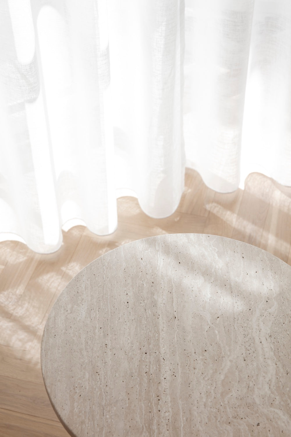 Mebel w całości wykonany jest z trawertynu, naturalnego kamienia, który sam w sobie jest dziełem sztuki. Każda płyta posiada unikalny wzór żył i odcień , a powierzchnia charakteryzuje się niewielkimi, naturalnymi porami i niedoskonałościami.