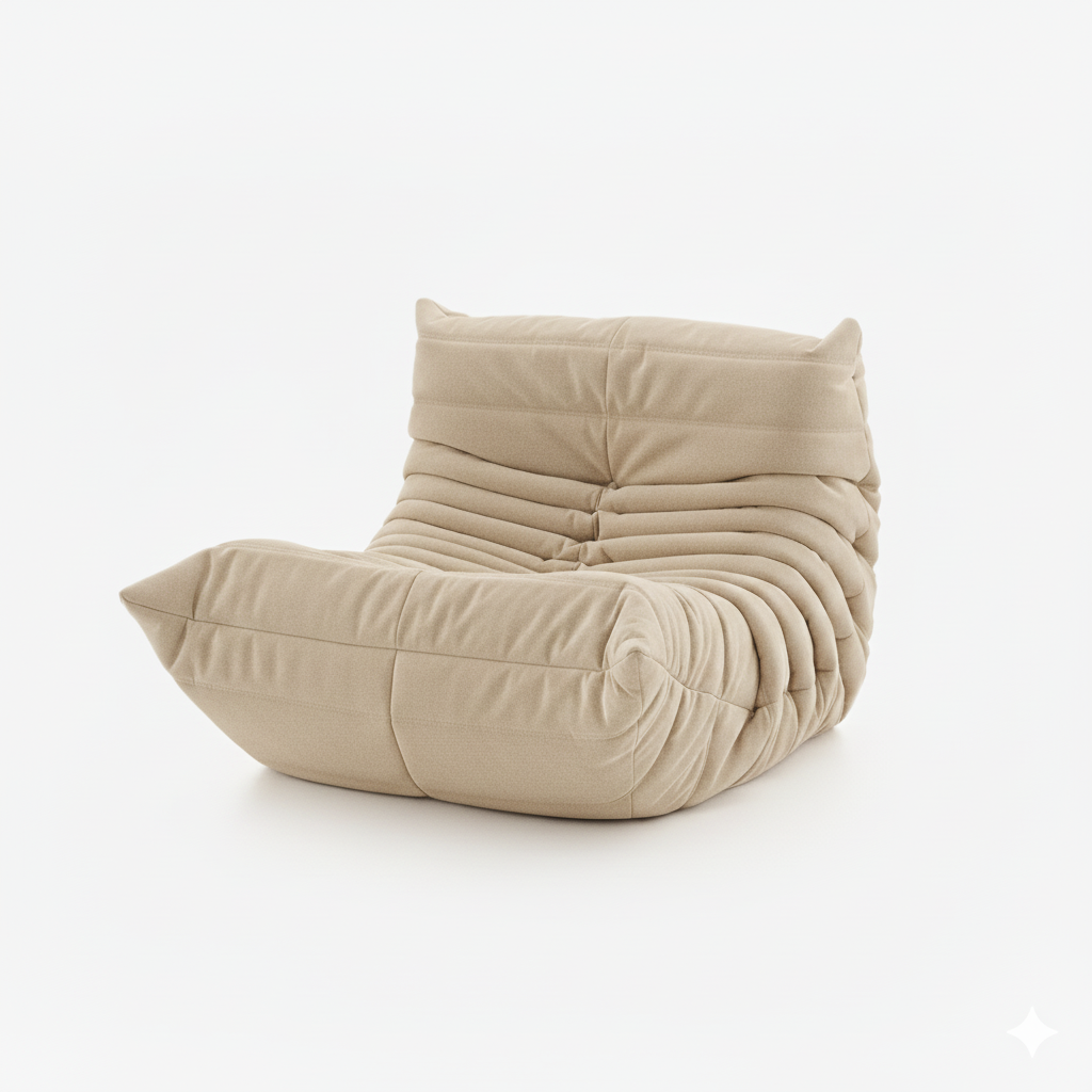 Legenda designu bez czekania. Oryginalny fotel Togo marki Ligne Roset w ciepłym odcieniu Alcantara Dune – dostępny natychmiast z ekspozycji salonu MOLO Home.