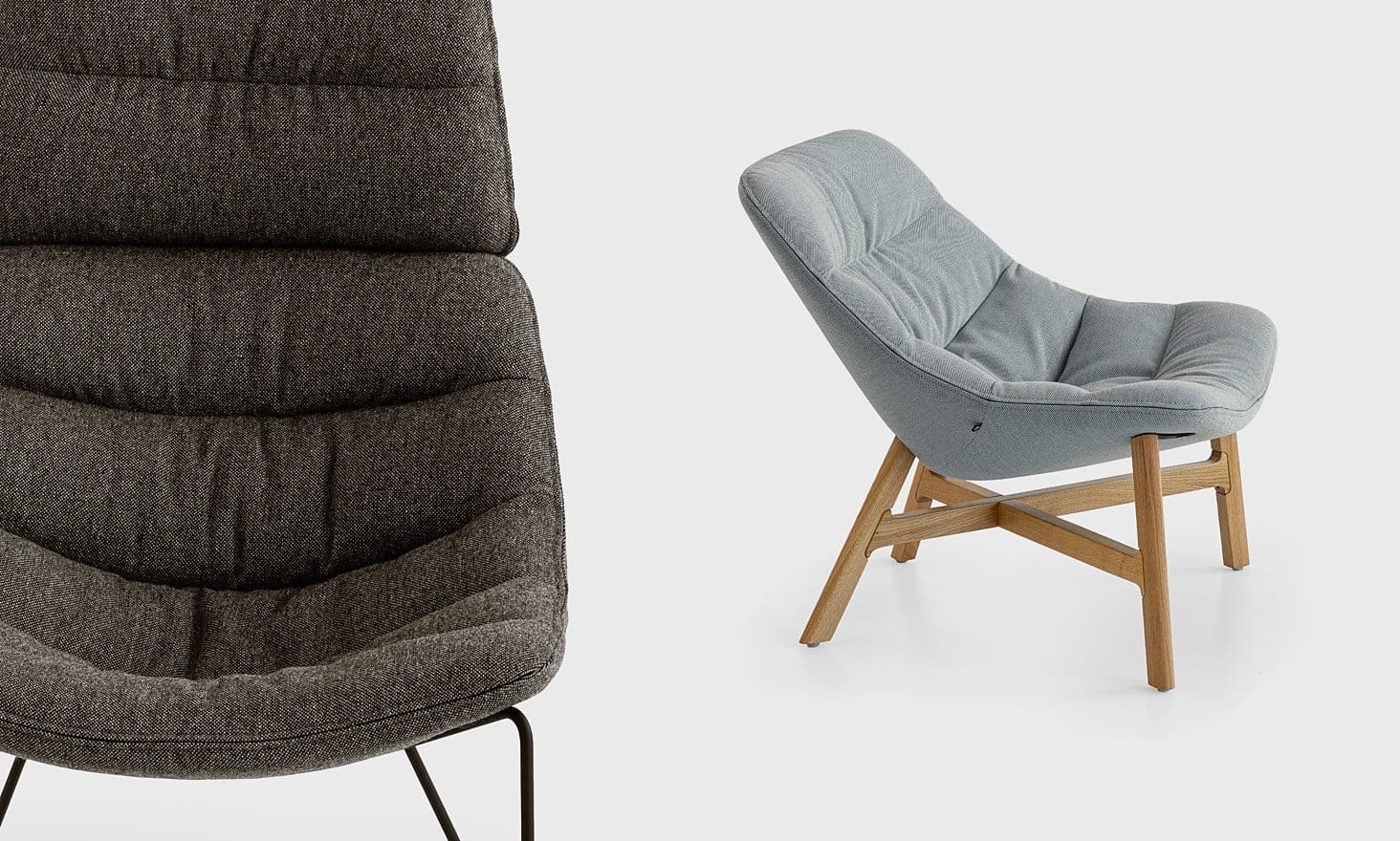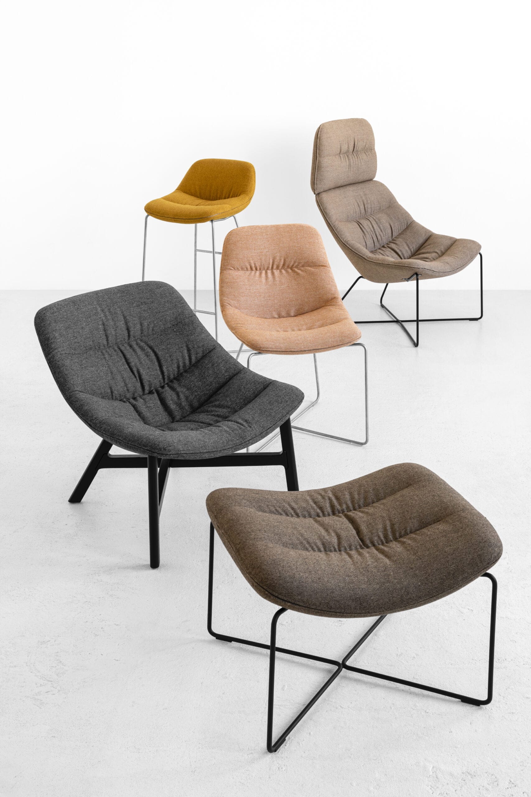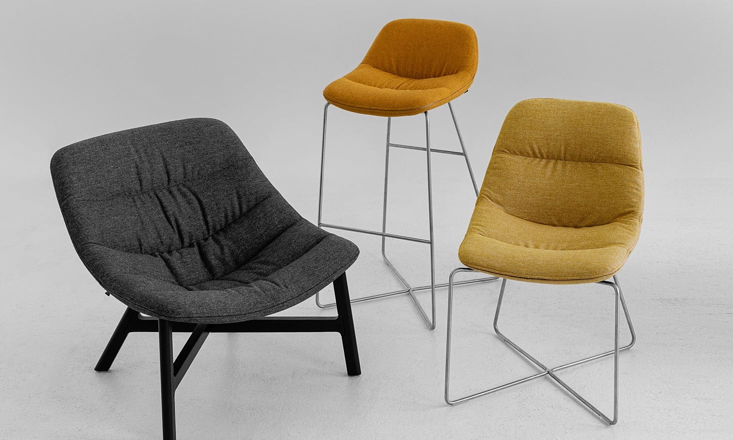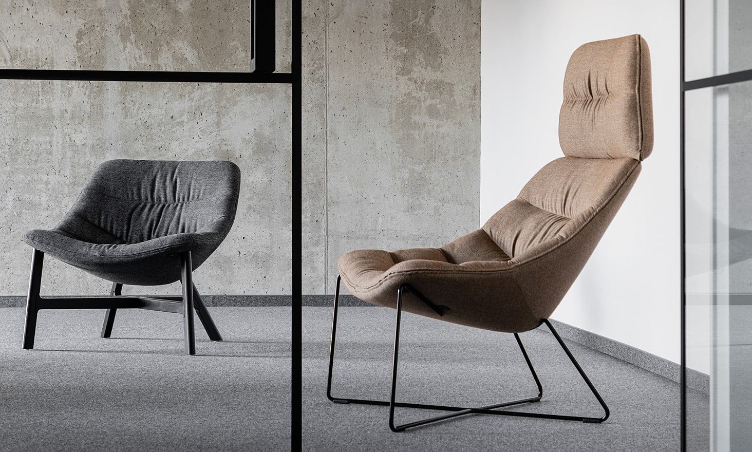 Konstrukcja oparta na piance poliuretanowej i stalowym stelażu gwarantuje trwałość, a rozbudowana rodzina modeli (niższe i wyższe oparcia, różne podstawy) pozwala precyzyjnie dobrać fotel do sposobu użytkowania – od kameralnego kącika do czytania po intensywnie eksploatowaną strefę lounge.