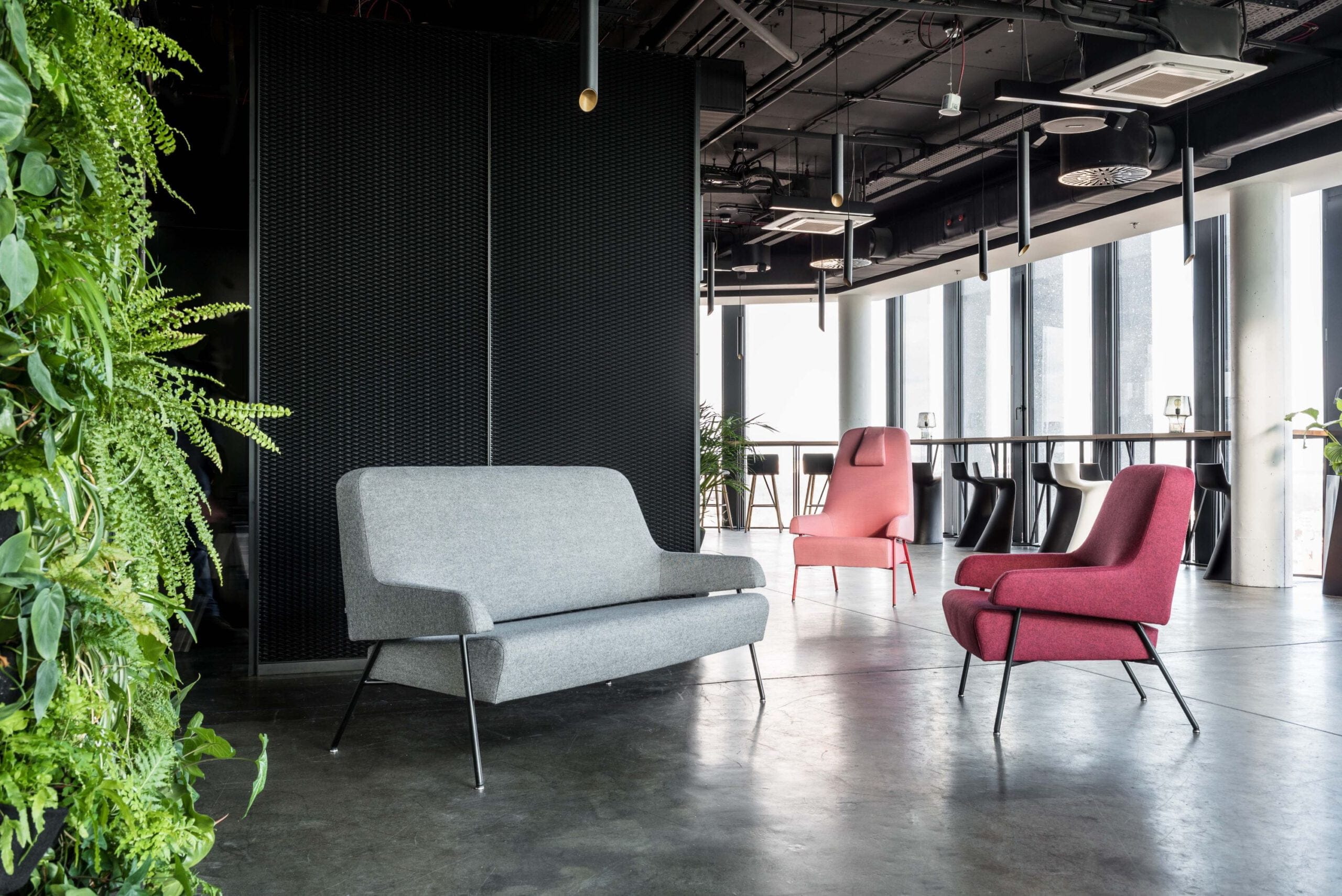 Sofa Gap marki Noti to część kompletnego systemu siedzisk inspirowanego latami 60., zaprojektowanego przez Towarzystwo Projektowe (Jerzy Porębski, Grzegorz Niwiński). Klasyczna, lekko zaokrąglona sylwetka, smukłe nogi i zrównoważone proporcje sprawiają, że sofa wygląda elegancko zarówno we wnętrzach publicznych, jak i domowych.