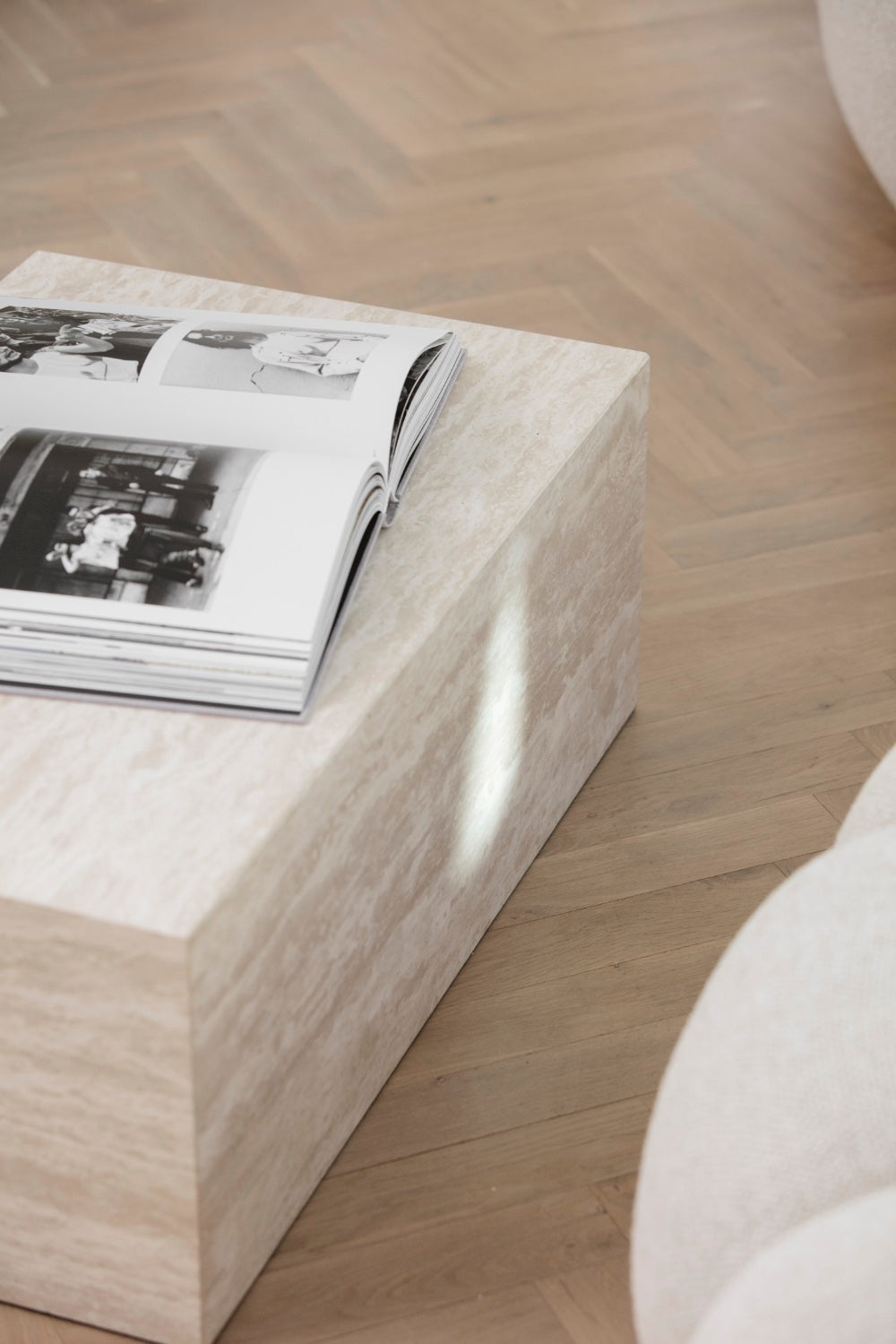 Stolik Cubism jest wielofunkcyjny: może służyć jako stolik kawowy, stolik boczny lub jako solidna, rzeźbiarska plinta (cokół) do eksponowania innych obiektów. Dostępny jest w dwóch wariantach kolorystycznych: Travertine oraz Silver Travertine.