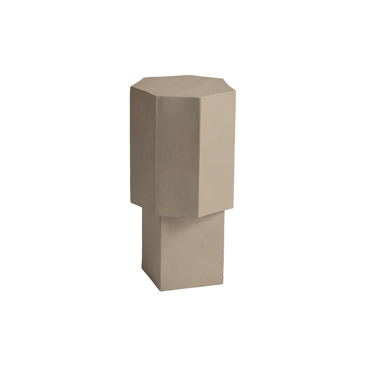 Stolik jest odlany z lekkiego betonu zmieszanego z włóknem (fiber concrete), co nadaje mu unikalną i wyczuwalną dotykiem fakturę powierzchni. W zestawie znajdują się podkładki pod podstawę.
